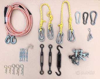 Gancio traino, moschettone, tenditore, grillo