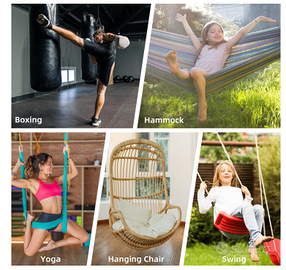 Vendo Gancio da soffitto M8 regge fino a 500 kg per svariati usi. Nuovo con scatola e accessori. Gancio in acciaio inossidabile da interno e esterno , rotazione a 360 gradi , regge fino a 500kg . Con viti e tasselli per ancoraggio o al muro, soffitto , cemento, travi di legno etc . Perfetto per amache sacchi da boxe , altalene , sedie sospese e tanti altri usi .