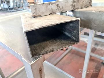 gancio per forche muletto usato, si tratta di un gancio artigianale in acciaio inox di carico per la presa e il trasporto di carichi pesanti. dimensioni: 33X32cm h13cm, forche 12X6cm
