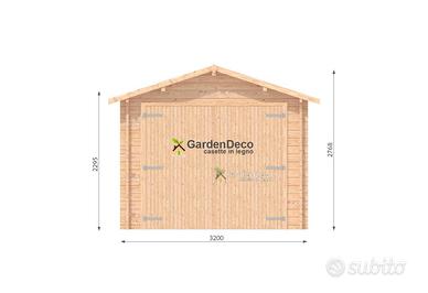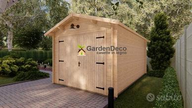 Garage in legno massello di pregiato abete bianco nordico naturale. Ideale come autorimessa o come magazzino. E' dotato di portone carrabile in legno massello e di una finestra a due ante. E' possibile acquistare dalla nostra sezione "Accessori" tegole bituminose canadesi di colore verdi e rosse, impregnante di vari colori, grondaie, porta basculante e tanti altri accessori utili per il tuo prefabbricato.