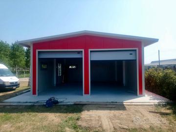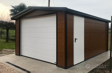 Produzione,vendita e mkntaggio di garage prefabbricati in pannelli sandwich,costruiti su misura in base alle vostre esigenze,complete di portoni sezionali motorizzati,porte pedonali,finestre e grondaie.