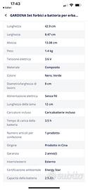 Contenuto del kit: forbici per erba a batteria