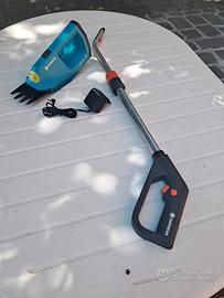 Gardena forbici a batteria per erba prato con manico estensibile e rimovibile. Funzionanti, in ottime condizioni. Molto utile per bordure e giardini di piccole e medie dimensioni.