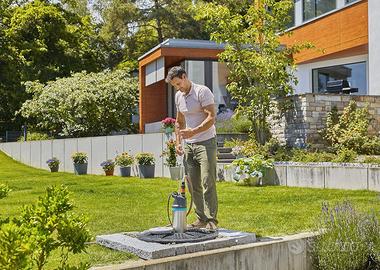 Pratico funzionamento automatico: mediante interruttore l’elettronica integrata avvia la pompa quando è richiesta acqua e la interrompe automaticamente quando non è più necessaria. Il programma brevettato per piccole quantità d'acqua garantisce un’irrigazione a goccia affidabile nonostante il riconoscimento attivo di perdite.