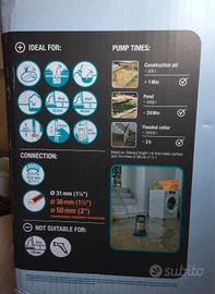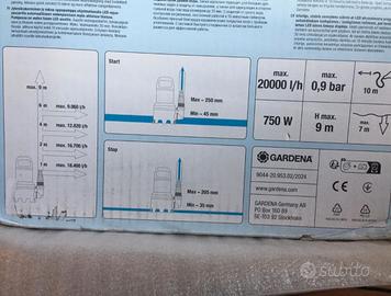 Su Amazon ha un prezzo di 150 euro. N.B: nuova, mai usata, perfetta, provato solamente il suo funzionamento nella vasca da bagno e funziona perfettamente,dopo pochi cm di acqua si attiva in automatico . Marchio Gardena Colore Standard Materiale : Ceramica Stile : Sommersa Dimensioni del prodotto : 28L x 22,5l x 45H cm Sorgente di alimentazione : Elettrico con cavo Particolarmente efficiente: con una potenza di 750 W la pompa trasporta fino a 20000 l/h d’acqua da pulita a sporca. Le particelle di sporco possono avere una dimensione fino a 35 mm Funzione Aquasensor: il Touch Control permette di definire l’altezza di accensione e spegnimento della pompa. Il sensore misura automaticamente il livello dell’acqua e attiva o disattiva automaticamente la pompa con precisione millimetrica e a seconda delle esigenze. Incluso funzionamento continuo e funzione timer. Lavorazione di alta qualità: grazie ai materiali di alta qualità la pompa sommersa è particolarmente robusta. Per una durata elevata l’albero motore dispone di un rivestimento ceramico con tripla tenuta Collegamento semplice: con un semplice clic è possibile collegare facilmente e velocemente tubi con un diametro di 32 mm (1 1/4"), 38 mm (1 ½") o 50 mm (2") La dotazione comprende: 1x pompa sommersa per acqua sporca 20000 Aquasensor GARDENA