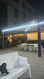 Propongo in vendita sei strutture modello vela Giulio Barbieri con tende anti vento e micro tende laterali . Struttura in ferro zincato laccato a fuoco grigio Raffaello ( pilastri e travi 11/11) . Ogni singolo gazebo dispone una doppia illuminazione a led rgbw 3000 k ip 68. Misura di ognuno 4:80*4:80. Il prezzo comprende trasporto e montaggio , inoltre il fornitore nel montaggio andrà a sostituire tutti i fissaggi e gli ancoraggi in acciaio per garantire un massimo funzionamento delle strutture .. In regalo saranno consegnati altri 60 metri di led nuovi ancora confezionati ,quindi altre 12 strip rgbw che serviranno per una futura manutenzione.