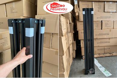 In commercio non esiste un gazebo pieghevole con queste caratteristiche ,piantone in acciaio da ben 40x40mm , fornisce una stabilità e solidità eccezionali , telo di qualità superiore OXFORD ad alta densità filare con rivestimento in PVC e cuciture termosaldate.