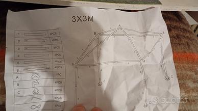 Gazebo dimensioni 3x3, comprato su Amazon per mercatini, usato qualche volta.