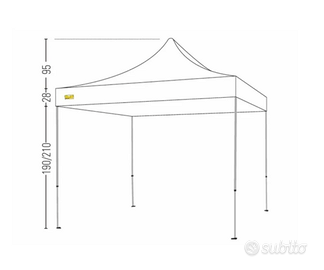 Struttura gambe: professionale in alluminio anodizzato, sezione esagonale irrobustito Ø 45 mm, spessore maggiorato, anticorrosione. Rinforzato nei punti di carico, 3 regolazioni in altezza con sistema anti-infortunistico. Ancoraggi velcro (straps) per il tetto.