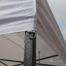 Pareti laterali: indipendenti, impermeabili, antivento, sigillate con ampio velcro lungo TUTTO il bordo di contatto sia tra telo tetto e parete, che tra una parete e l'altra