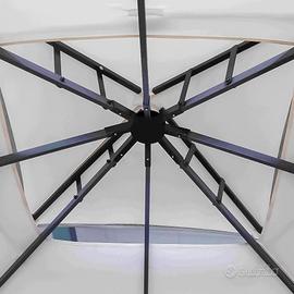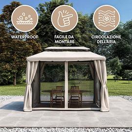 Tetto Ventilato: Il Tetto del gazebo è progettato in modo da garantire un corretto flusso d'aria interna e mantenere una temperatura ideale anche in giornate calde e con le zanzariere tirate. la copertura del tetto è totalmente impermeabile e garantisce l'utilizzo del gazebo anche in giornate piovose