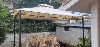 vendo per vendita casa gazebo 3x3 tenuto solo per questo periodo estivo, ho aggiunto al gazebo la luce, come in foto e presa per la corrente. tettuccio nuovo 150 euro no trattabili.