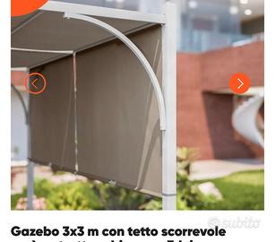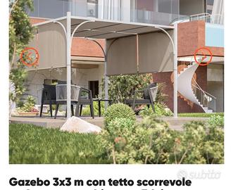 Vendo gazebo come da foto, telaio bianco tende scorrevoli Écru. NUOVO MAI MONTATO ED ANCORA IMBALLATO IN CONFEZIONE ORIGINALE . vendo per incompatibilità location dove montarlo .