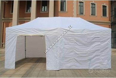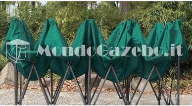 Gazebo 3x6 PIEGHEVOLE RIPIEGHEVOLE RICHIUDIBILE EXTRA FORTI TELAIO IN ACCIAIO MONTANTI 4x4CM ASTE MAGGIORATE 3,0x1,5 CM SISTEMA GANCIO/SGANCIO RAPIDO IN ACCIAIO A BAIONETTA ANTI-INFORTUNISTICO Nuovi imballati Uso quotidiano PROFESSIONALE Azienda accreditata MEPA TUTTI COMPRESI DI PARETI Disponibili nelle misure: 3x3 3x4,5 - 4,5x3 3x6 - 6x3 e disponibili nei colori: Bianco BIu Verde Nero Rosso Giallo DISPONIBILI ANCHE CON TELAIO: - ACCIAIO DA 3CM - ACCIAIO DA 4CM - ALLUMINIO ESAGONALE DA 45MM - ALLUMINIO ESAGONALE DA 60MM Prodotto completo: 4 pareti, porta, kit mercati Meccanismo rapido ad ombrello Ragno Fisarmonica ALTEZZA AL PASSAGGIO regolabile IMPERMEABILE 100% telo tetto 900D (no tela o fregature) Cuciture DOPPIE e NASTRATE Acciaio colore sabbia o nero (non a scelta) verniciato a polvere (possibile qualche imperfezione/scheggiatura della verniciatura) Piedi in acciaio Raccorderia pezzi speciali viteria snodi angolari crocere: TUTTI IN METALLO (vedi foto) Telo tetto: Oxford 900D con spalmatura a caldo a PVC interna Esterno (tipo jeans), spalmato PVC interno per l'impermeabilizzazione (tipo telo camion) Cuciture doppie tutte nastrate. 100% impermeabile a test 10h pioggia artificiale. Pareti laterali: indipendenti, impermeabili, antivento, sigillate con ampio velcro lungo TUTTO il bordo di contatto sia tra telo tetto e parete, che tra una parete e l'altra. Ogni parete è un modulo indipendente, intercambiabile di posizione, si monta a piacere Possono essere anche non montate. Il prodotto nel prezzo comprende le seguenti pareti e kit accessori: - 3 pareti cieche - 1 parete con porta a zip - Una parete in più oltre alle 4 con finestrone/zanzariera - fascione copribanco alto 1 metro oppure 2 mezze pareti laterali da 3 metri - 6 sacchi zavorra da riempire in ghiaino, in tinta col colore del telo - Borsone trasporto Consegna: 24/48H in tutta Italia con spese ? 20,00 pagamento alla consegna