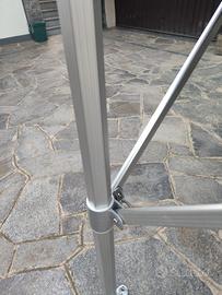 Vendo bellissimo gazebo pieghevole, struttura esagonale molto resistente, 4,5x3 MT. , altezza regolabile. Usato pochissimo. vendo con pali verticali per montare gli striscioni pubblicitari. sacca per trasporto.