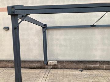 Vendo struttura Gazebo 4x3m h=1,9m (punto più basso) usata, struttura in alluminio, copertura spiovente in tralicci in acciao. Colore antracite. Le viti di assemblaggio verranno sostituite con viti inox. NON disponibile il telo di copertura. Usato, ma la struttura si presenta in buone condizioni, robusta. Ideale per la copertura di una automobile. No spedizione.