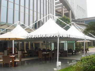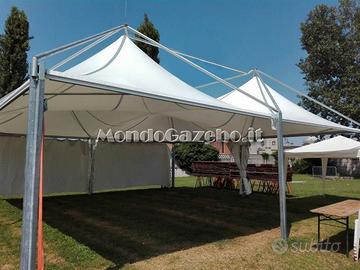 Le nostre coperture possono essere personalizzate con l'aggiunta di teli laterali per gazebo aventi diversi tipi di finestre e aperture, possono essere assemblati e uniti l'uno con l'altro con apposite grondaie.
