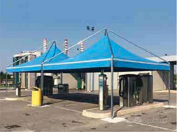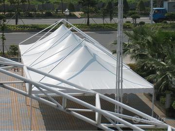 Il telone di copertura del tendone è costituito da tessuto di supporto in fibre poliestere spalmate da ambedue i lati in PVC garantisce un'alta resistenza alla lacerazione e all'azione deteriorante degli agenti atmosferici.
