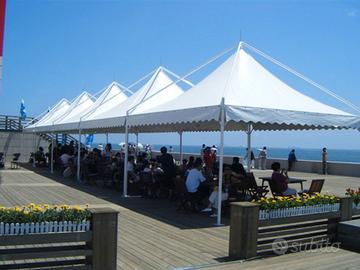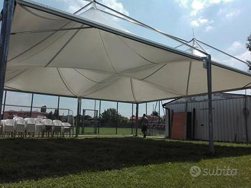 Le nostre coperture possono essere personalizzate con l'aggiunta di teli laterali per gazebo aventi diversi tipi di finestre e aperture, possono essere assemblati e uniti l'uno con l'altro con apposite grondaie.