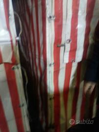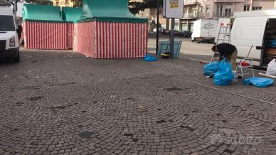 Gazebo professionale ,metri 6x3, con pedane in tavole di castagno, teli in PVC spessi e struttura in travetti legno quadrati spessore 15 cm circa ,con congiunzioni in acciaio e bulloni da 12 mm