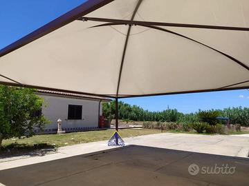 Gazebo Cupola 6x6 zincato, assolutamente nuovo, gronda incorporata, pilastri 80x80 , stabilizzatori ai 4 angoli, telo in pvc ignifugo, adr cl 2, non comprende laterali, non comprende trasporto, non comprende I.. v..a.. non comprende verniciatura. è franco nostra sede all uscita autostrada CAPUA (Ce) per interessati lasciare un recapito