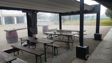 Si vende Gazebo chiuso e apribile su tutti i lati completo di tetto apribile, illuminazione led e lampade scaldanti. Ottime condizioni, sempre manutentato.