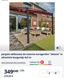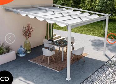 VENDO GAZEBO/PERGOLA A MURO. QUINDI HA SOLO 2 SUPPORTI ( pali ). CON TENDA RICHIUDIBILE TRAMITE CORDINI. LARG. 330 cm - LUNG. 260 cm - ALTEZ. 260 cm. SMONTATO PER CAMBIO PROGETTO. PAGATO 360,00€.