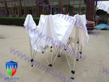 Gazebi Pieghevoli, apertura Rapida a Forbice, Disponibili 4 linee,da Semi professionale sino a Professionale Elite Plus in Alluminio, Link : http://www.mm-italia.com/Gazebi%20apert%20rapida.htm Linea Express Semi Professionale tubi 3 x 3 cm. - tetto 600D spalmato Pu , pareti con tessuto 400D spalmato in Pu Borsa non inclusa Incluse 3 Pareti Dimensioni : 3,0 x 3,0 mt. € 174,00 i.e. Cad. Kg. 21 Trasporto € 30,00 i.e. 3,0 x 4,5 mt. € 230,00 i.e. Cad. Kg. 35 Trasporto € 30,00 i.e. 3,0 x 6,0 mt. € 283,00 i.e. Cad. Kg. 40 Trasporto € 30,00 i.e. Colori Bianco – Blu – Verde – Beige – Rosso - Nero - Grigio -------------------------------------------------------------------------- Linea Oro Professionale tubi 4 x 4 cm. quadrati - tetto 600D spalmato Pu , pareti con tessuto 400D spalmato in Pu Borsa da Trasporto senza rotelle inclusa Incluse 4 Pareti Dimensioni : 3,0 x 3,0 mt. € 268,00 i.e. Cad. Kg. 30 Trasporto € 30,00 i.e. 3,0 x 4,5 mt. € 350,00 i.e. Cad. Kg. 36 Trasporto € 40,00 i.e. 3,0 x 6,0 mt. € 396,00 i.e. Cad. Kg. 52 Trasporto € 50,00 i.e. Colori Bianco – Blu – Verde - Beige ----------------------------------------------------------------------- Linea Platino Professionale Elite tubi esagonali 4,0 x 4,0 cm - tetto 600D spalmato Pu , pareti con tessuto 400D spalmato in Pu Borsa da Trasporto senza Rotelle Inclusa Dimensioni : 3,0 x 3,0 mt. € 348,00 i.e. Cad. Kg. 35 Trasporto € 30,00 i.e. 3,0 x 4,5 mt. € 412,00 i.e. Cad. Kg. 48 Trasporto € 40,00 i.e. 3,0 x 6,0 mt. € 460,00 i.e. Cad. Kg. 63,5 Trasporto € 50,00 i.e. Colori Bianco – Blu – Verde - Beige -------------------------------------------------------------------------- Linea Diamante Professionale Elite Plus in Alluminio tubi esagonali Ø 4,5 x 4,5 cm. - tetto 600D spalmato Pu , pareti con tessuto 400D spalmato in Pu Borsa Trasporto con Rotelle Inclusa Incluse 4 Pareti Dimensioni : 3,0 x 6,0 mt. € 490,00 i.e. Cad. Kg. 46 Trasporto € 50,00 i.e. Blu –Beige www.mmitalia.it
