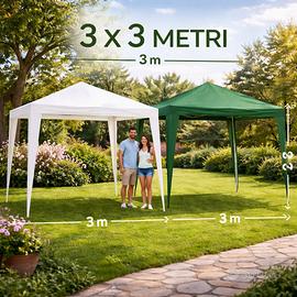 Questo gazebo da esterno 3x3 m è la soluzione perfetta per creare un’area coperta in giardino, terrazzo, cortile o durante eventi all’aperto. La struttura è realizzata in ferro con tubi da 25/19 mm e spessore 0,4 mm, progettata per garantire una buona stabilità durante l’uso.Il telo superiore è in polietilene da 100 g/m², resistente alla pioggia leggera e ai raggi UV, ideale per offrire ombra e riparo in qualsiasi occasione. L’altezza centrale è di 2,45 m, per una copertura ampia e comoda.Facile da montare grazie al sistema con tubi ad innesto e giunture, è perfetto per feste, mercatini, barbecue, zone relax o copertura temporanea.
