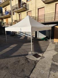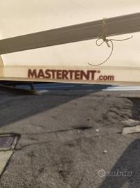 gazebo 4x4, in ottime condizioni, con i teli laterali x chiuderlo completamente struttura molto forte tutta in alluminio, della ditta mastertend,completo del telo per riporlo e pesi e picchetti. prezzo poco trattabile.