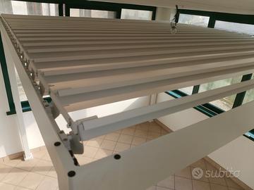 Pergola frangisole autoportante con telaio totalmente in alluminio a lamelle orientabili con meccanismo manuale.