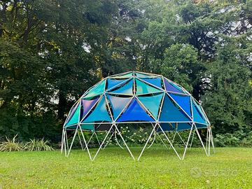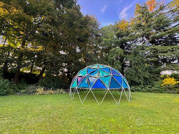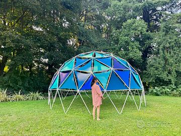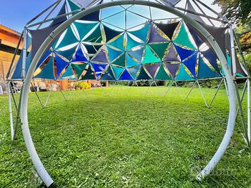 Gazebo Cupola geodetica in ferro e tessuto ombreggiante.