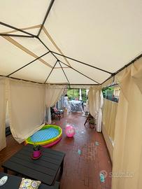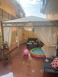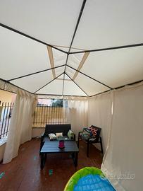 Gazebo da esterno con tende richiudibili anti strappo e zanzariera telaio in acciaio antracite. Usato solo una estate. Praticamente nuovo . Misura 3x4 Metri