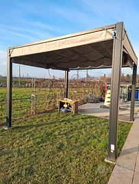 Gazebo Esterno Resistente 3x3 m, Gazebo da Giardino Impermeabile e Robusto per Esterni, Tetto Retraibile, Telaio in Alluminio, Telo Per Protezione UV in Poliestere, Grigio