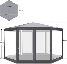 Vendo Gazebo da giardino esagonale grigio con zanzariera impermeabile 394 x 394 x 250 cm