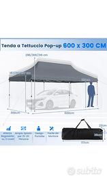 Gazebo da giardino, lungo 6 metri largo 3 metri e arriva fino a 3 metri di altezza. Ha la sua borsa per il trasporto con i picchetti, corda e porta sabbia per i piedi. Tutto in metallo.