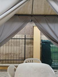 vendo gazebo da giardino in metallo con copertura i tessuto atipiogia e chiuse laterali in tessuto antipioggia con apertura a cerniera.