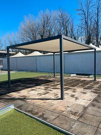 GAZEBO BEACH "N" ACCIAIO PROFILO 100X100 CON TETTO FISSO PVC GRIGLIA lato a=5,00; lato b=4,00; altezza sotto trave=2,40; telo SOLTIS 88 BIANCO; STRUTTURA VERNICIATA GRIGIO ANTRACITE MICACEO zincato a caldo