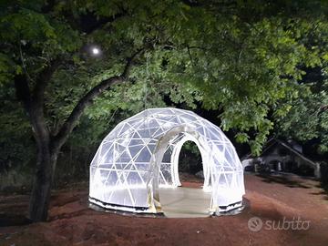 Realizziamo gazebi geodetici dalla forma sferica innovativa, ideale per giardini, eventi, fiere, matrimoni, glamping o semplicemente come copertura elegante per spazi esterni.