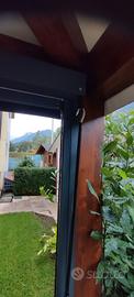 Vendo gazebo da giardino in legno pino lamellare, completo di copertura anti pioggia e 2 opposte paratie a tendina laterali in PVC trasparenti e anti pioggia.