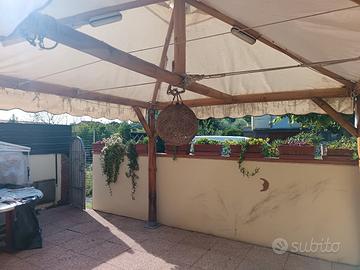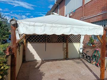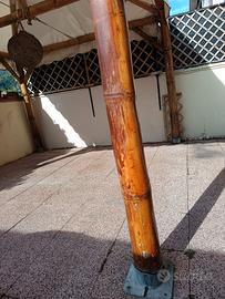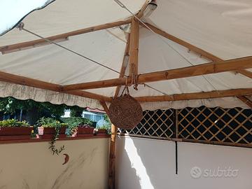 Gazebo in canna di bambù pali di 12 cm di diametro.compreso di copertura,,4 basi di ferro zincato di diametro cm 12,anche 2 luci bianche interne e una palla-luce centrale.