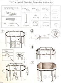 Gazebo 5 x 3 metri ovale, senza telo. Completamente in metallo, robusto e in buone condizioni. Regalo ferramenta aggiuntiva acquistata a parte. Completo di istruzioni di montaggio.