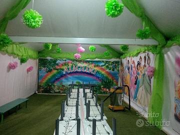 Gazebo nella misura di 4 x 4 m NUOVO DA NOI PRODOTTO con struttura in ferro zincato pesante da 2 mm di spessore, per uso professionale, con tetto in telo pvc da 650 g/mq ignifugo cl. 2.