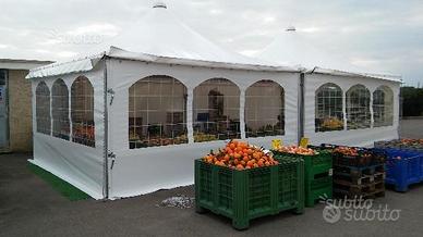 Questi gazebo possono essere utilizzati per manifestazioni, sagre o eventi, o semplicemente in un giardino per mangiare al coperto o per il parcheggio della propria auto, molto robusti e resistenti con vita media di oltre 10 anni se montato a regola d'arte e fissato per terra.