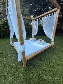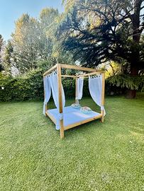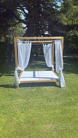 Vendo gazebo in legno massello struttura alta 240x2mx2m, alto da terra 35cm legno autoclavato 9x9 resistente alle intemperie, molto robusto con divani in stoffa impermeabile bianca, ottimo per piscine mare o semplice giardino, per ulteriori dettagli scriveteci possibile fattura e possibilità di altri pezzi
