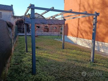 Diimensioni: 2700x2700 alto 2000 sotto il telo e 2350 circa alla sua altezza massima del palo.