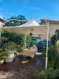 Gazebo in ferro forgiato bianco. m. 4x3. Nato da esposizione , tenuto benissimo. Ottima copertura. Vendo x trasloco imminente. euro 2.000 tratt