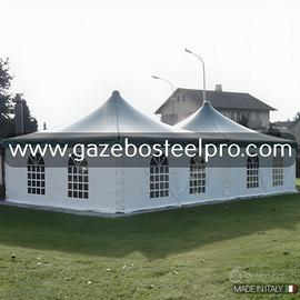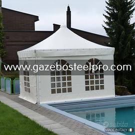 Certificato per uso pubblico e prodotto in Italia con garanzia italiana, il Gazebo Airone Basic è la soluzione ideale per creare un ambiente elegante e sicuro per qualsiasi tipo di evento.