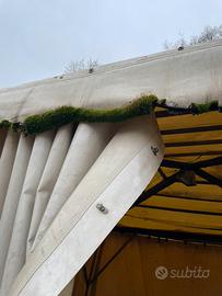 Gazebo largo 3,8 profondo 3,80.x smontarlo va tagliato con flessibile e risaldato.i legni sopra vanno sostituiti e il telo presenta buchi