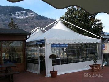 Gazebo sprech modello pagoda 4,10x4,10 tubo zincato robusto struttura certificata con telo pvc beige 1013 650 gr mq certificato ignifugo contiene automobili furgoni roulotte ecc resistente al vento alla neve disponiamo di teli laterali di chiusura fissi e scorrevoli cadauno completi di ferramenta,ottimo per esposizioni fiere sagre spiagge ,veloce da montare e smontare bello per arredare il giardino con tavoli e sedie.Nuovo colori a scelta trasporto da concordare .Disponibili a 10 gg tutte le misure tutti i modelli e vari colori.Prezzi iva compresa.
